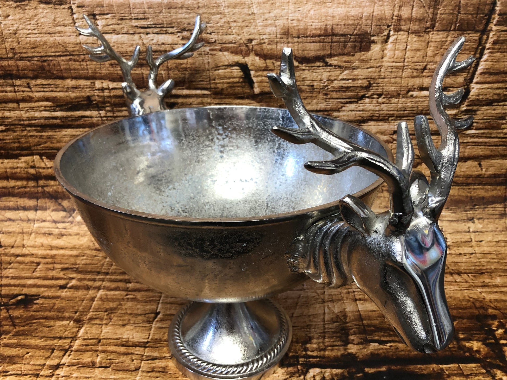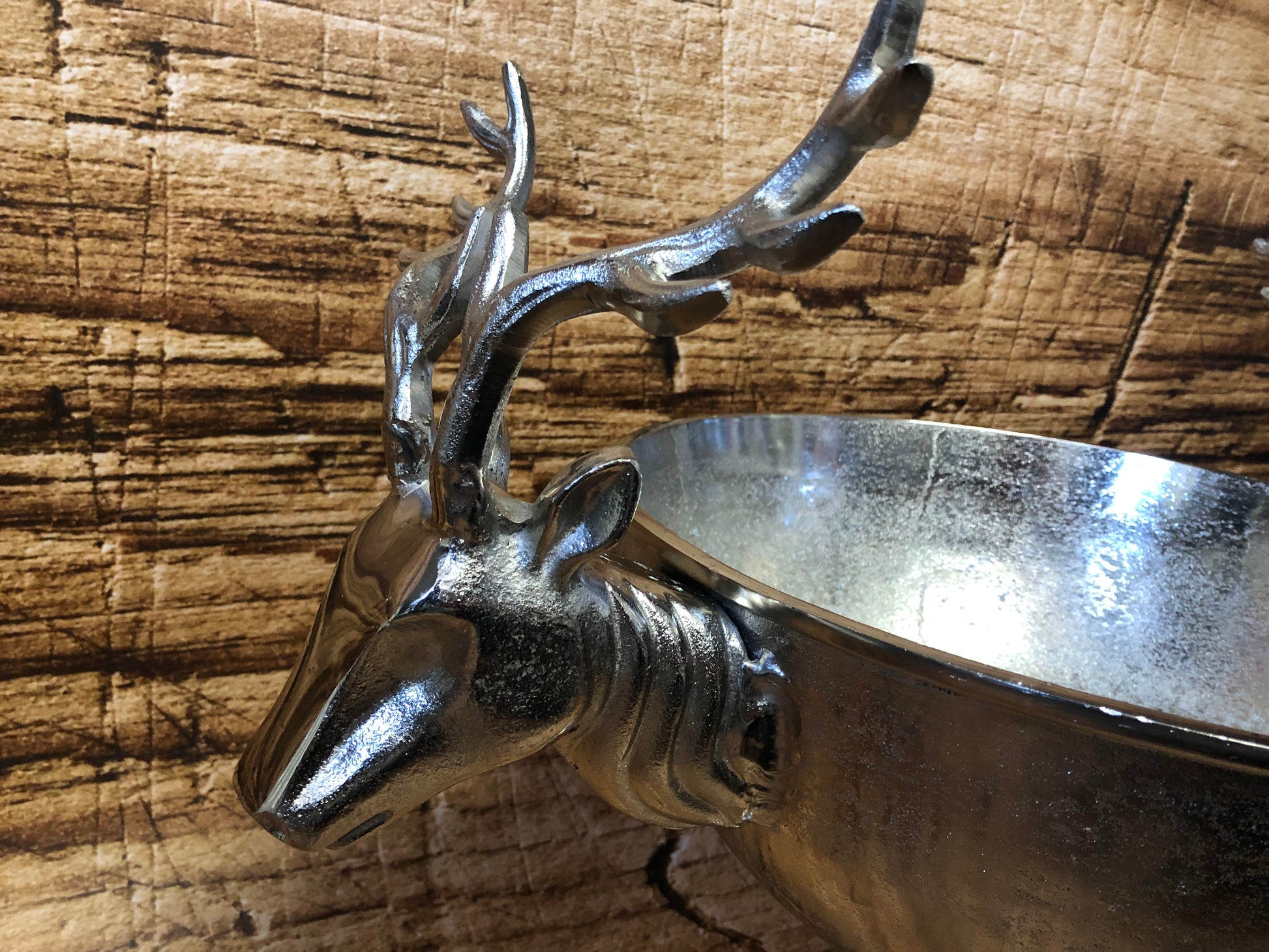 Een grote Champagne koeler met aan beide kanten hertenkoppen.