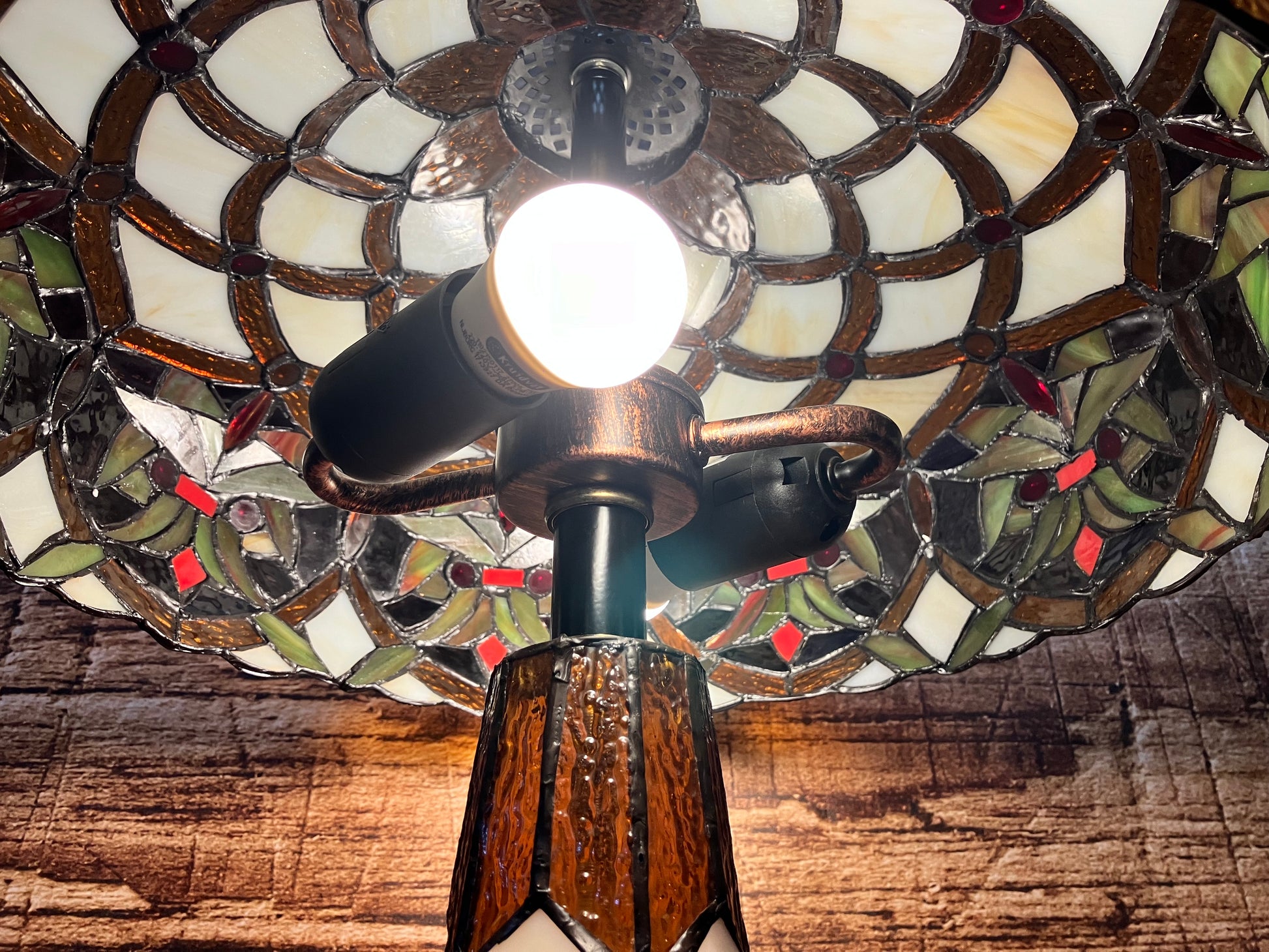 Met een lichtpunt in de voet en twee onder de kap is het een eyecatcher in uw interieur.