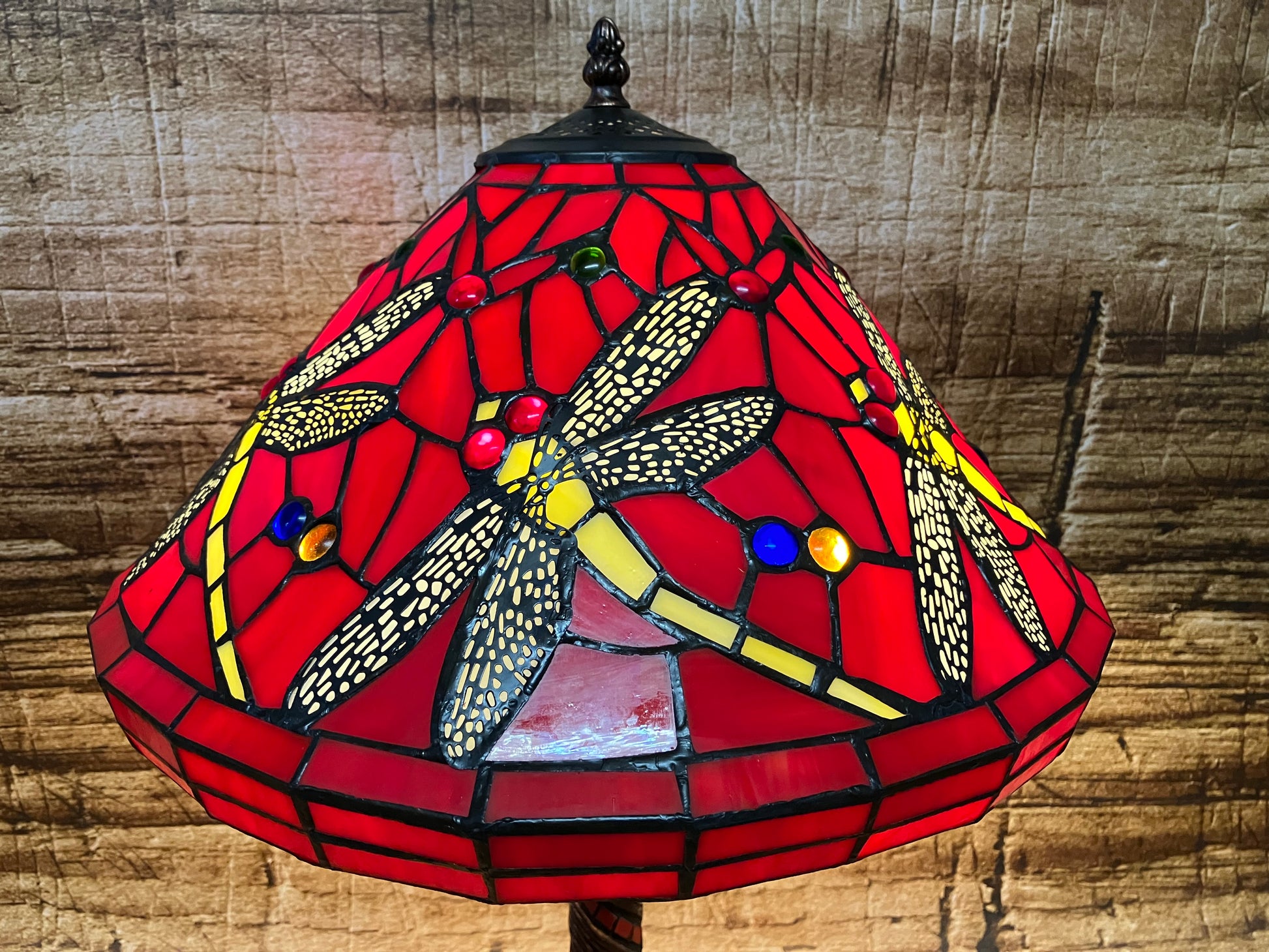 Glas in lood tafellamp (Dragonfly).