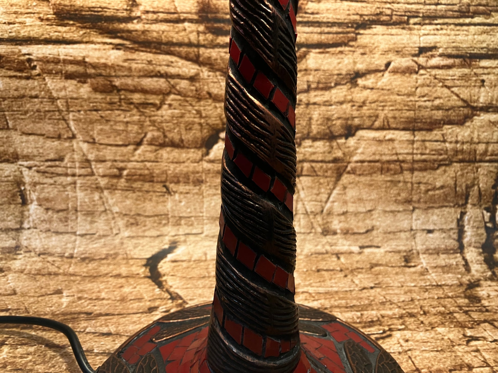 Prachtige handgemaakte glas in lood tafellamp met mozaïek in de voet.