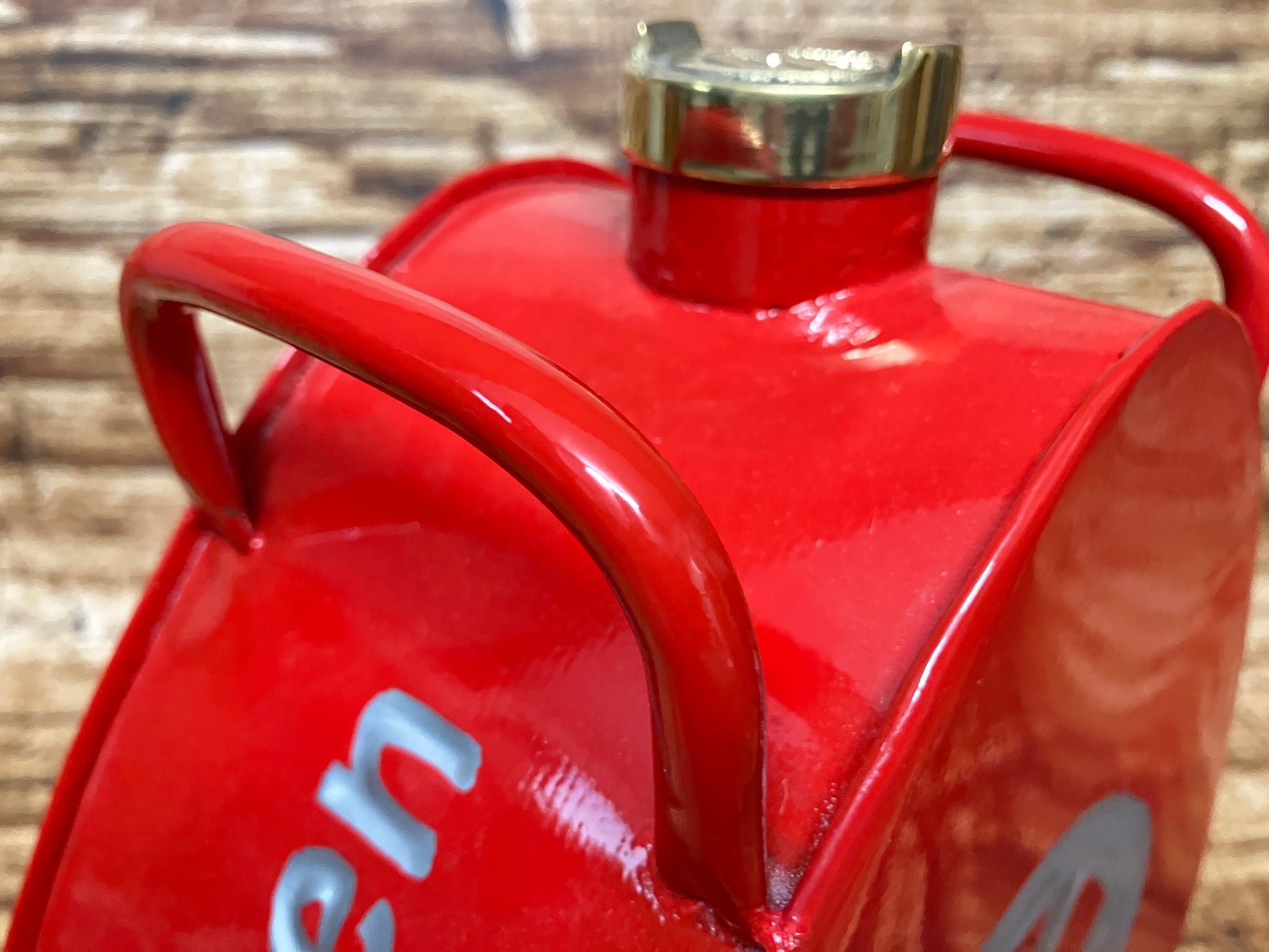 Jerrycan metaal handgeschilderd met VW (Volkswagen) logo en messing dop.