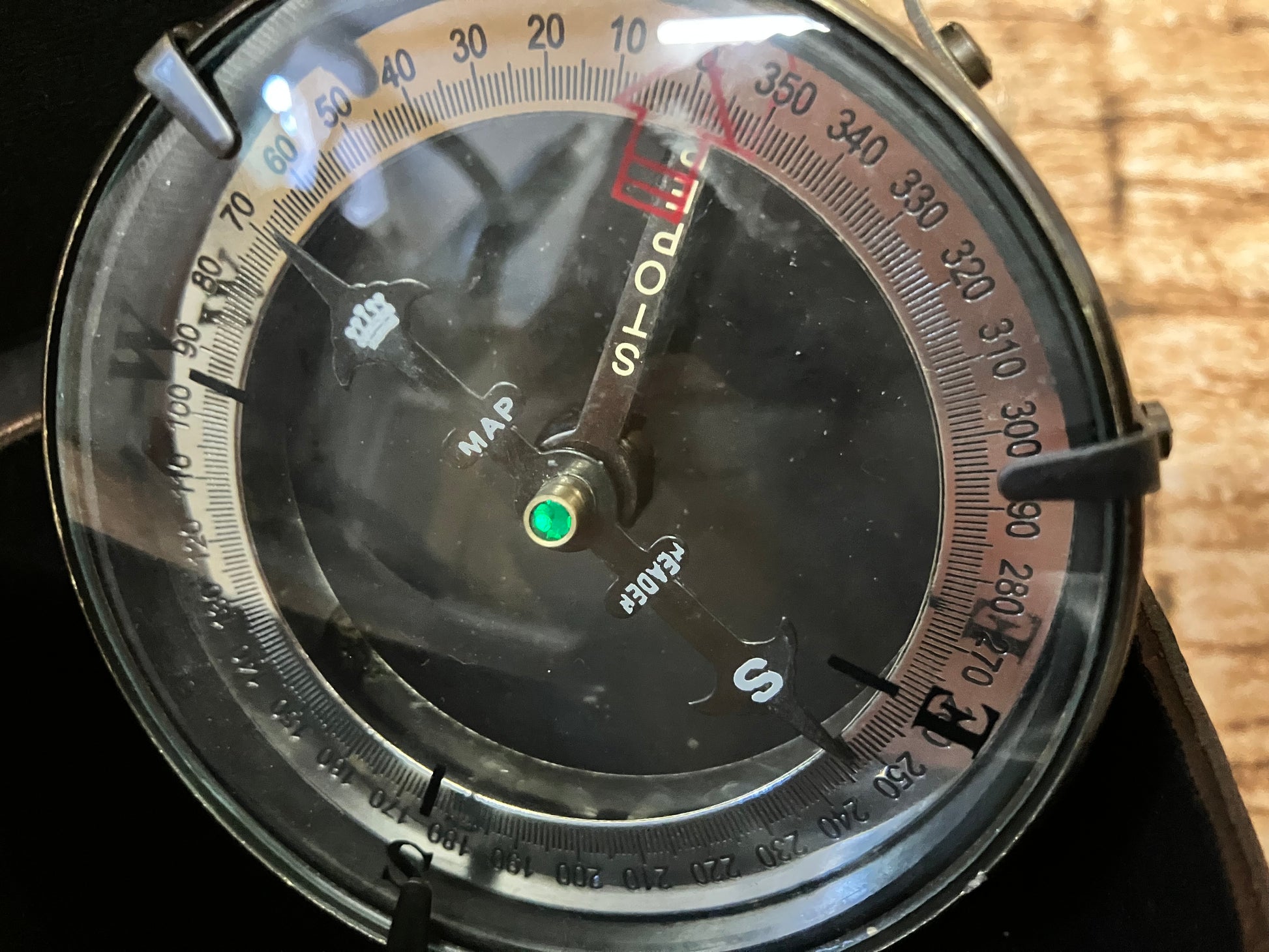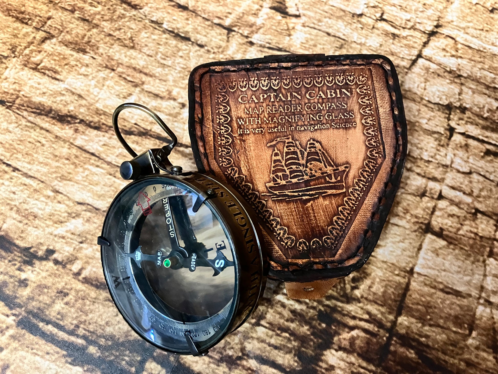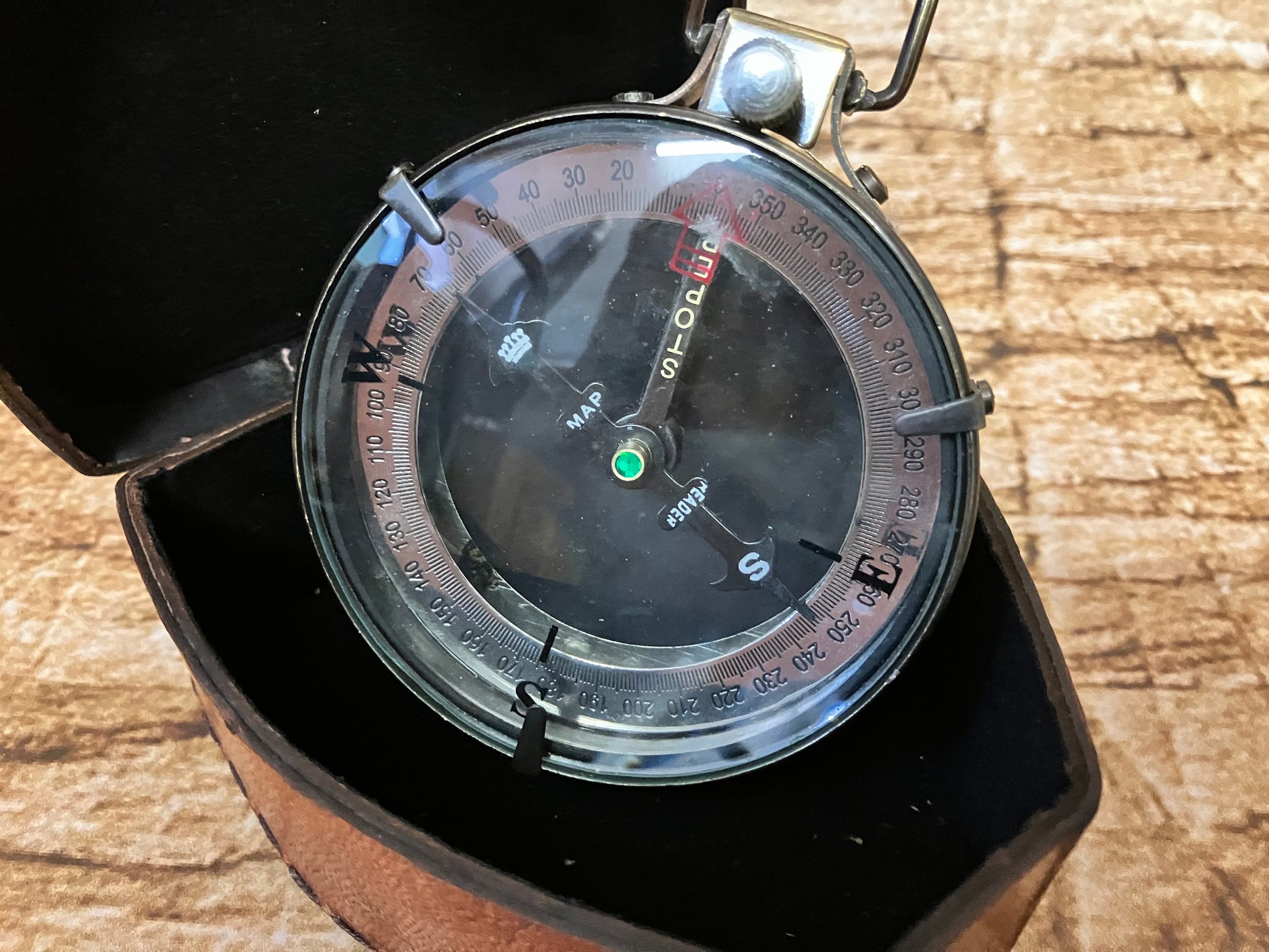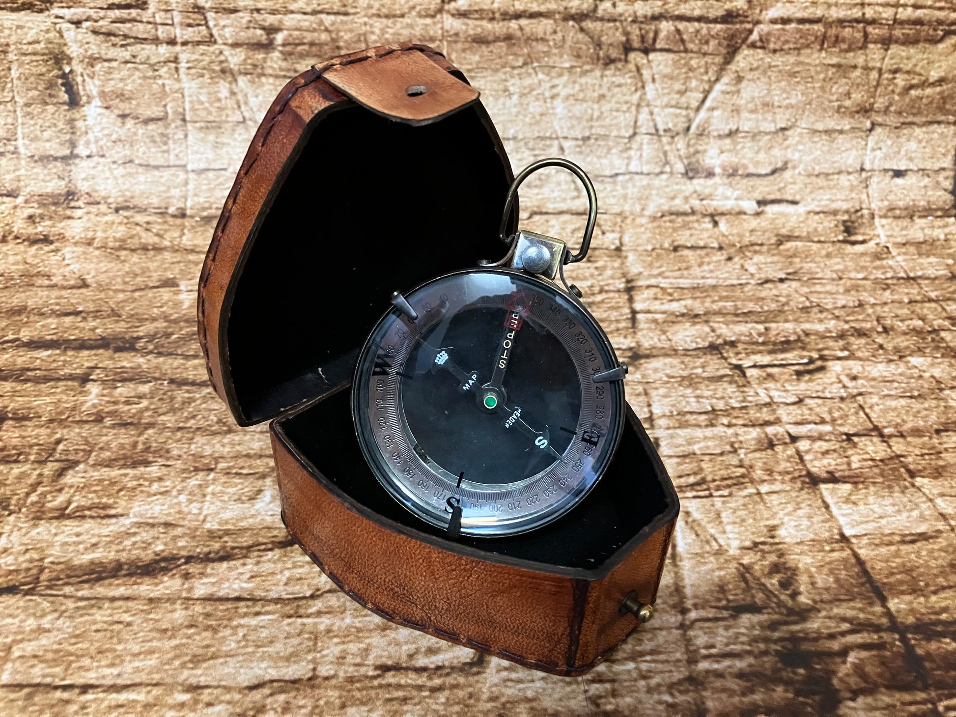 Kompas in lederen etui.
