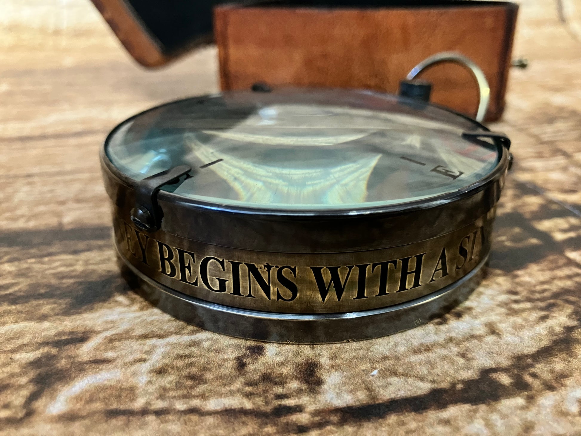 Een gaaf messing kompas in meegeleverd etui.