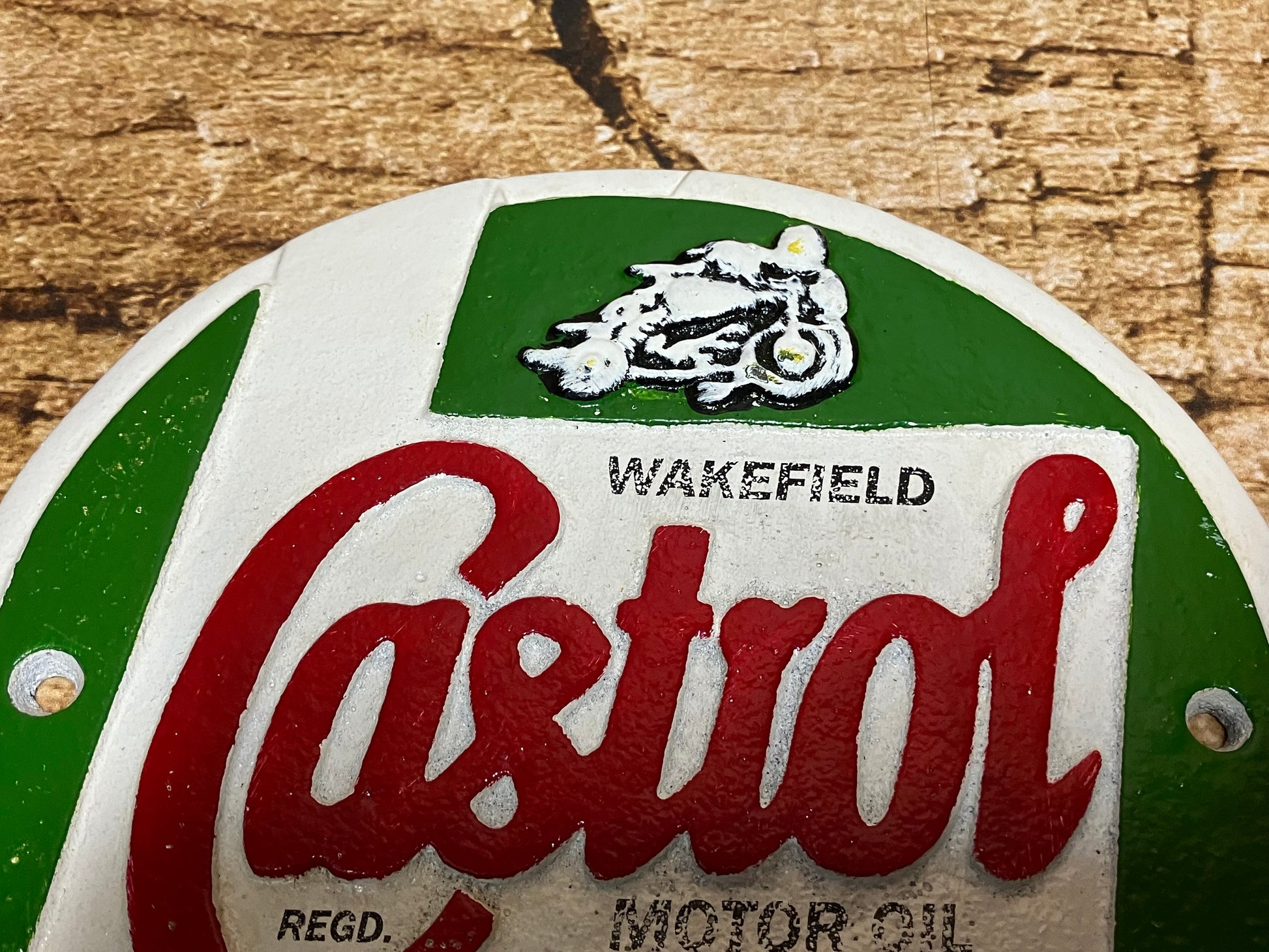 Castrol Motor Oil wandbordje van massief gietijzer.