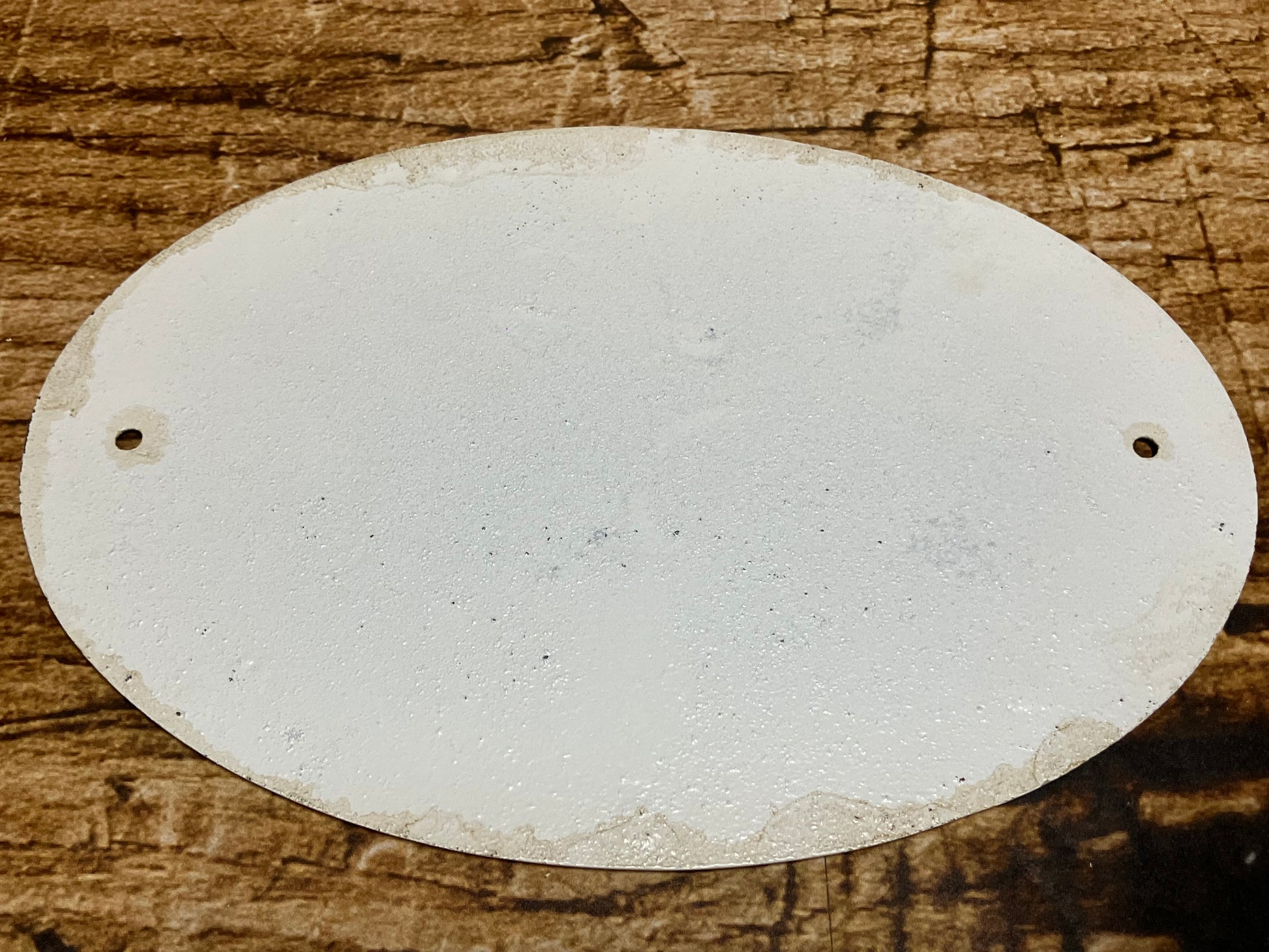 Het bordje heeft een hoogte van 22 cm en 32 cm breed.