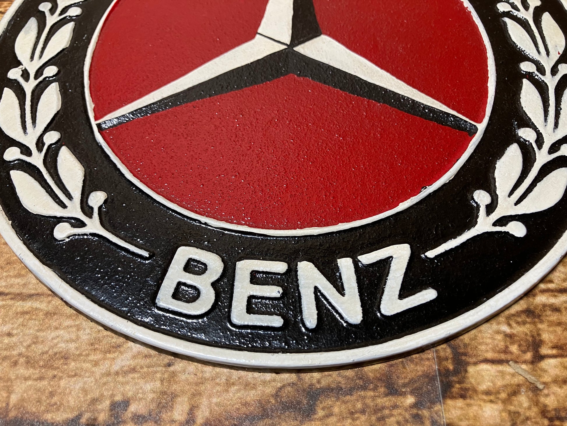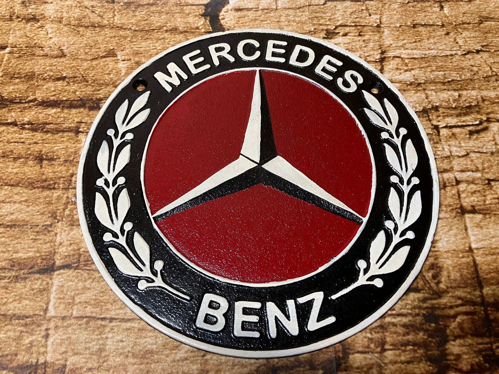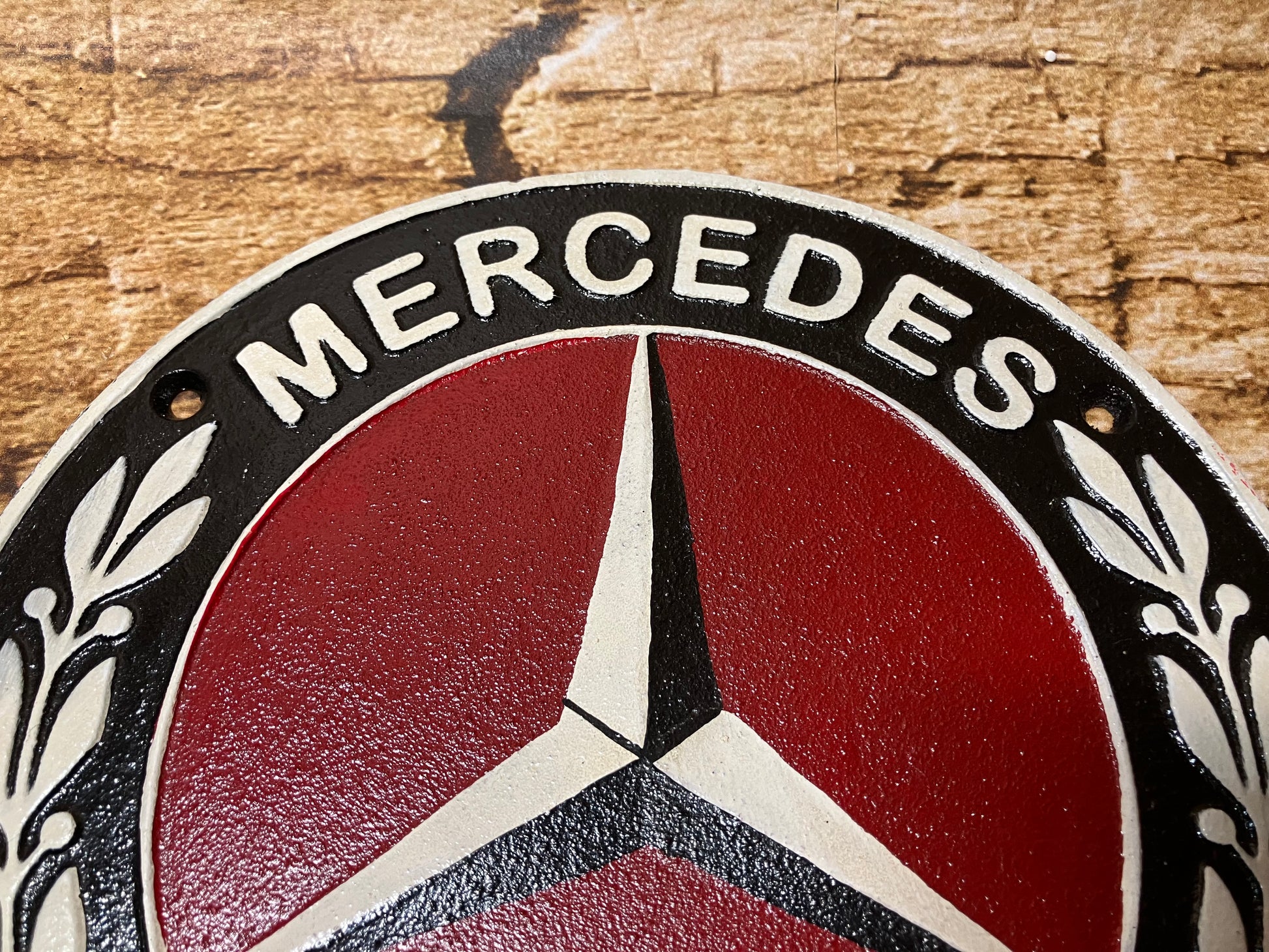 Mercedes-Benz wandbordje van massief gietijzer.