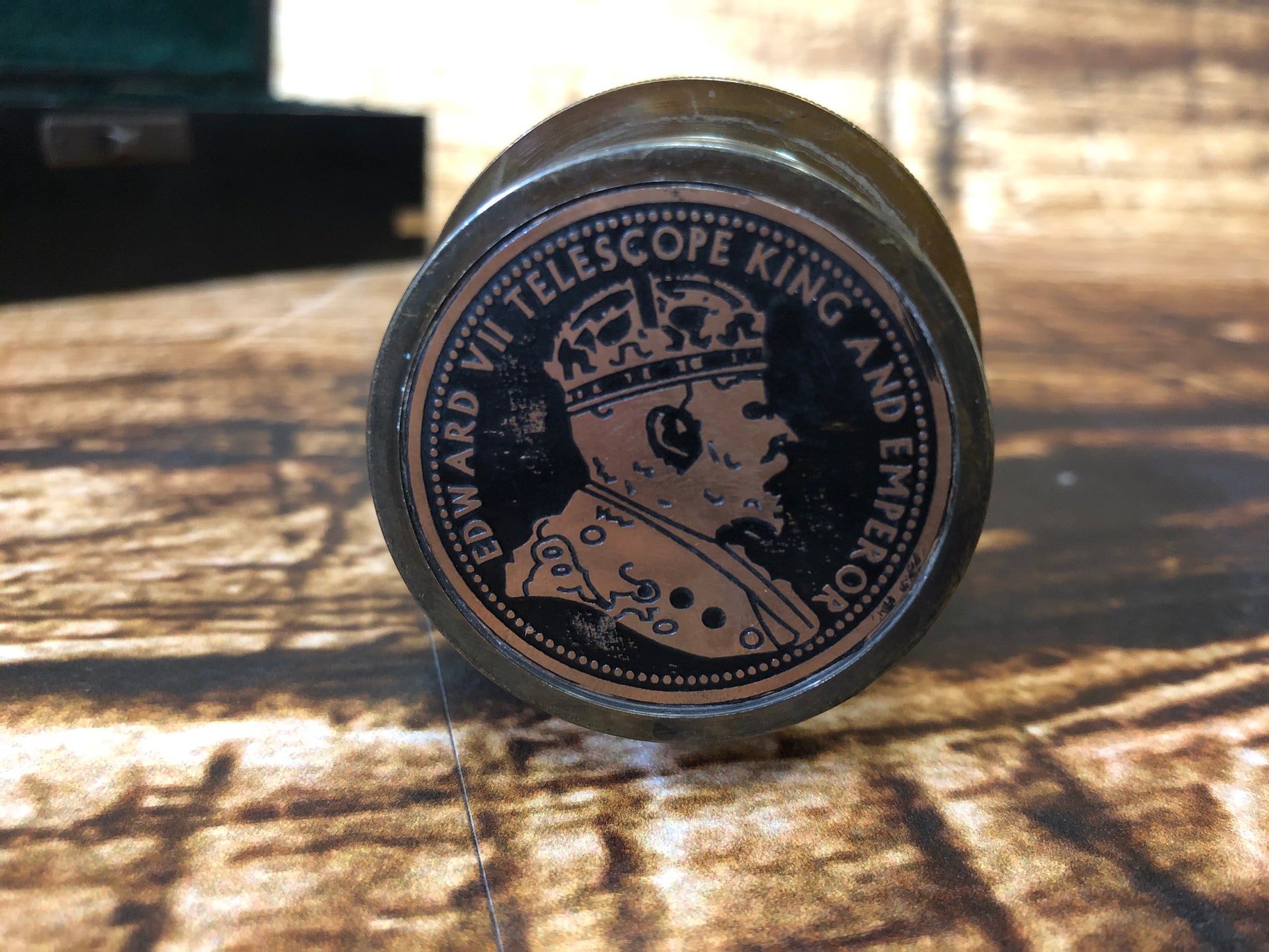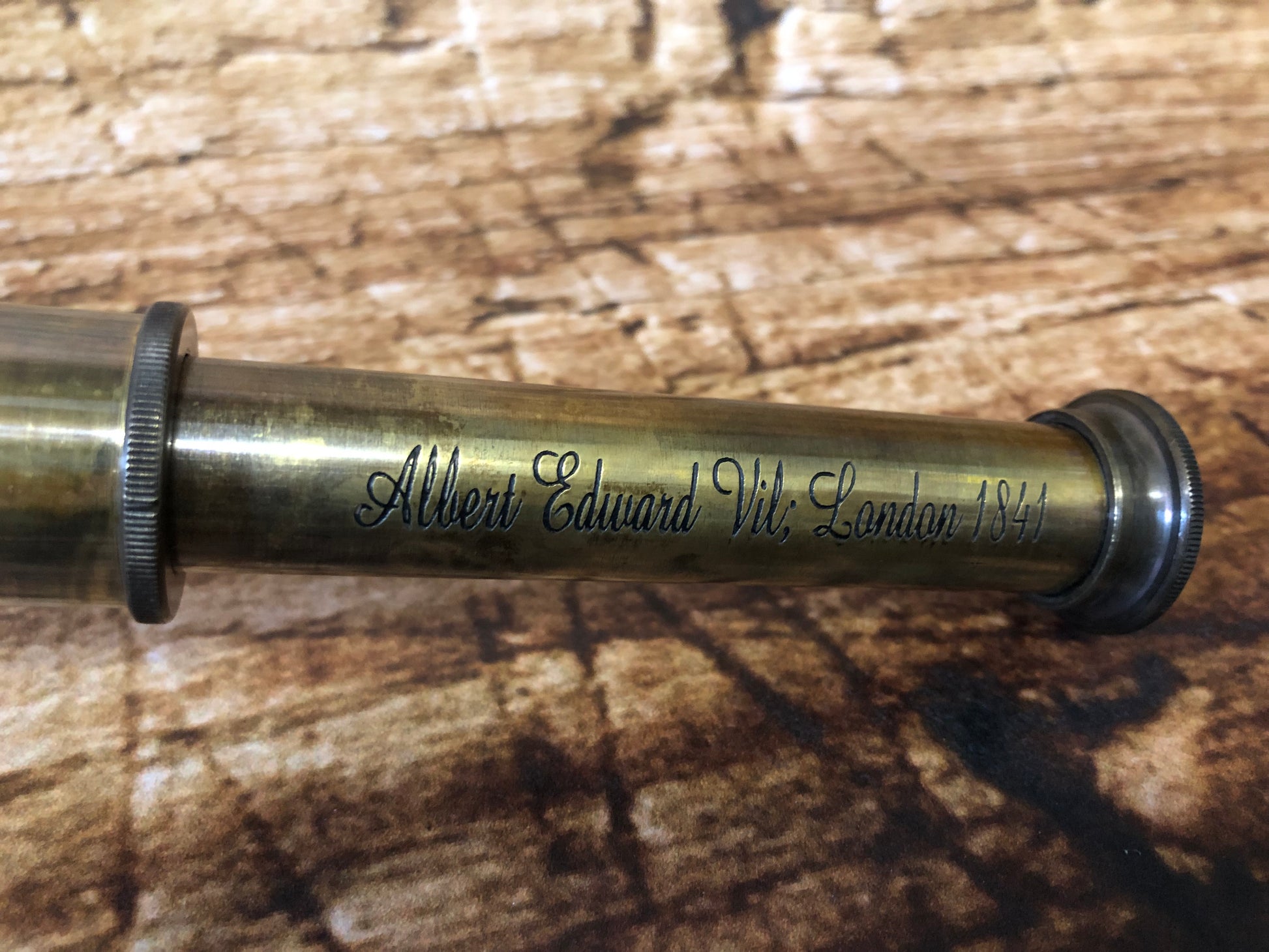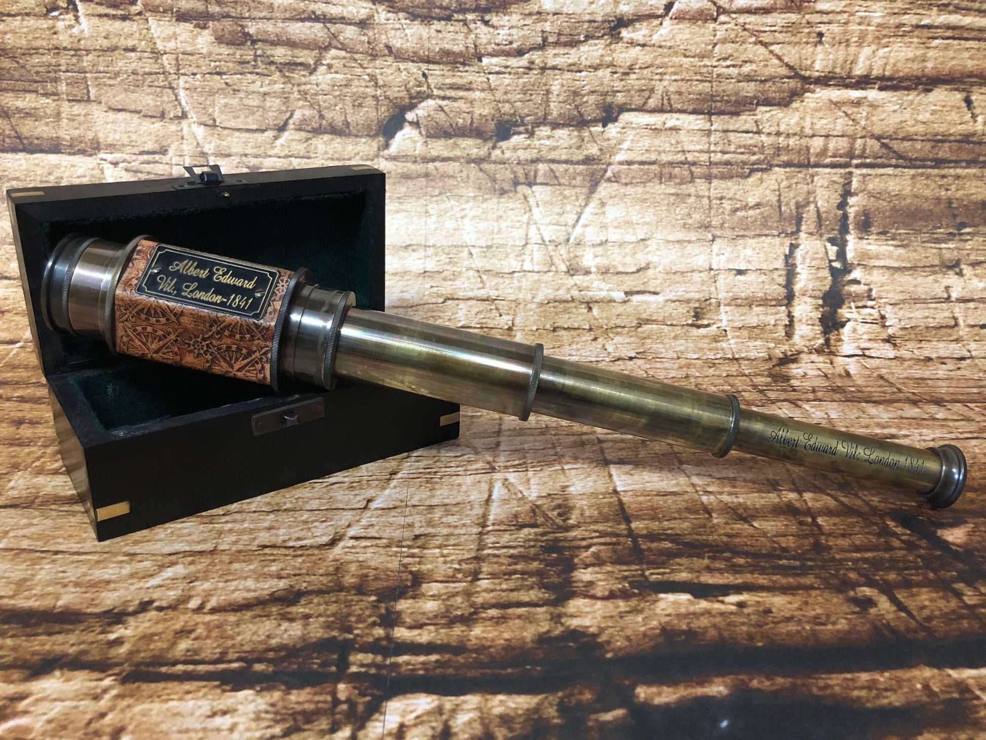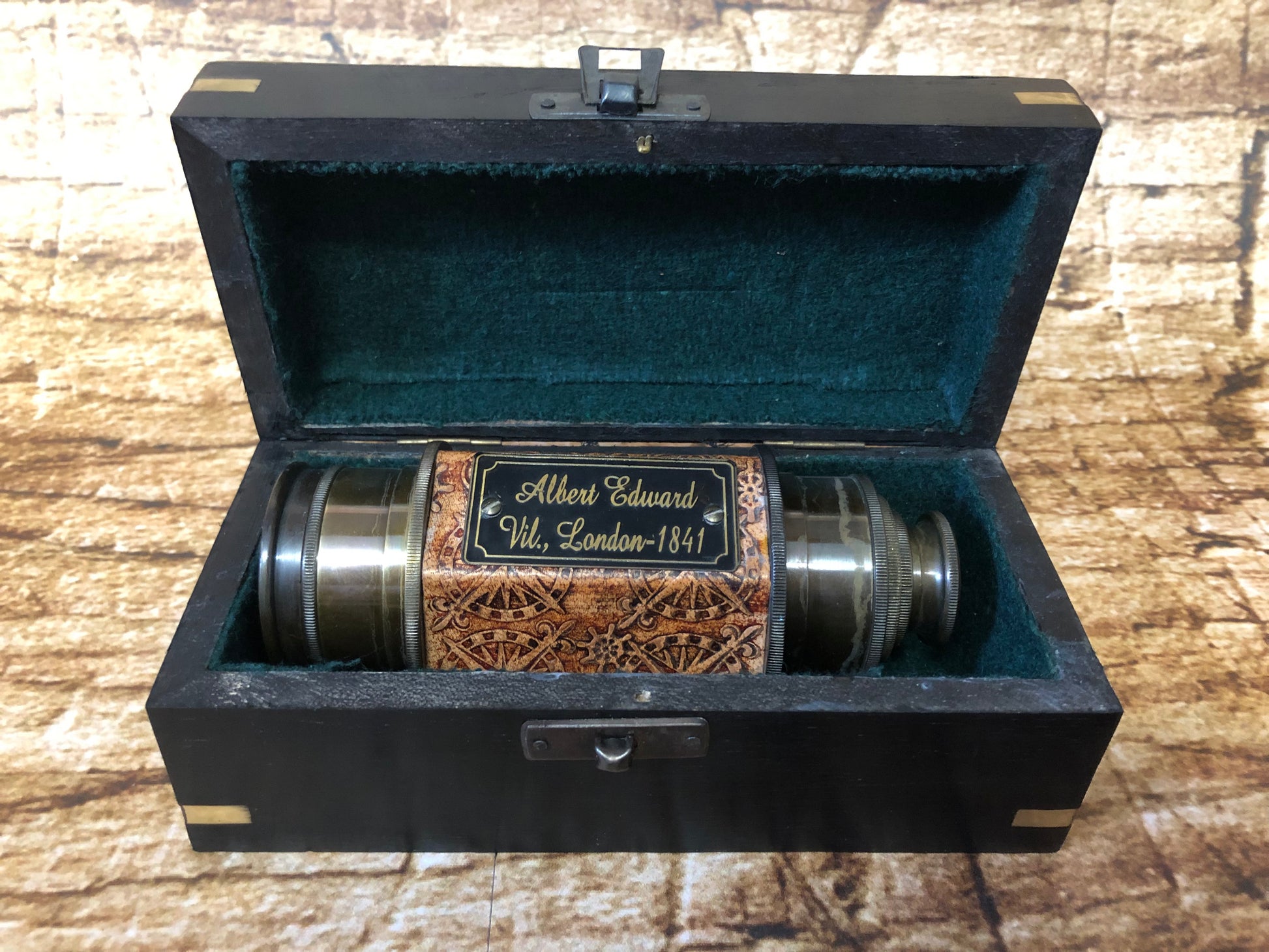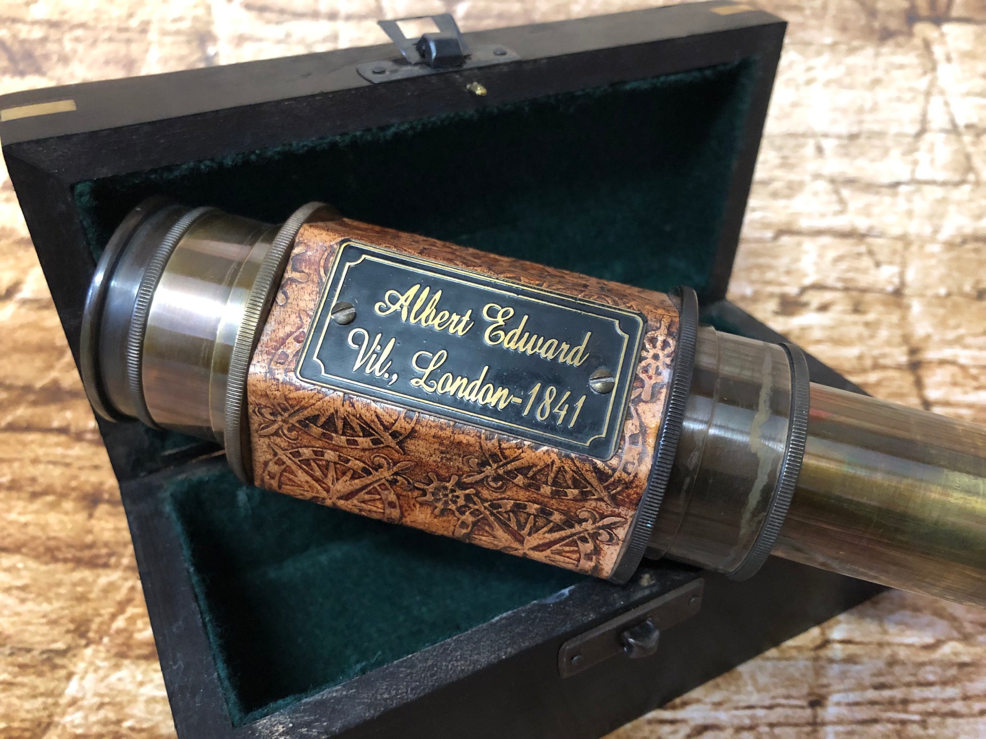 Een replica Telescoop Albert Edward London 1840 in opbergkistje.